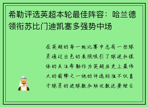 埃尔林·哈兰德作为当今足坛最具冲击力的中锋之一,在英超赛场上的表现已经超越了许多传奇射手。令人震惊的是,他已经四次在英超赛季前六场比赛中打入8球以上,这一壮举让他独占历史榜单,成为唯一一位多次完成这一成绩的球员。本文将围绕哈兰德的这一纪录展开深入探讨。首先,我们会从数据与纪录的角度解读其历史意义,分...
